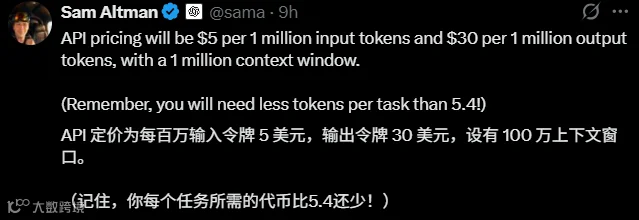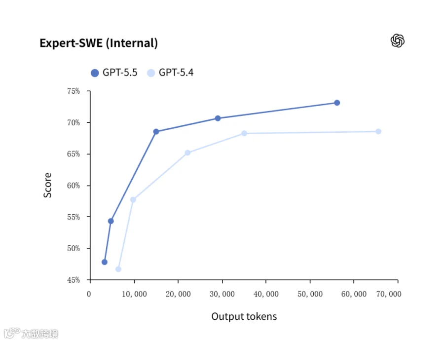 在真实的生产环境中,它的逐 Token 延迟与 GPT-5.4 相当,但完成相同任务所需的 Token 却更少了。一句话总结:效率更高,能力更强。(当然,代价是价格也翻倍了)。