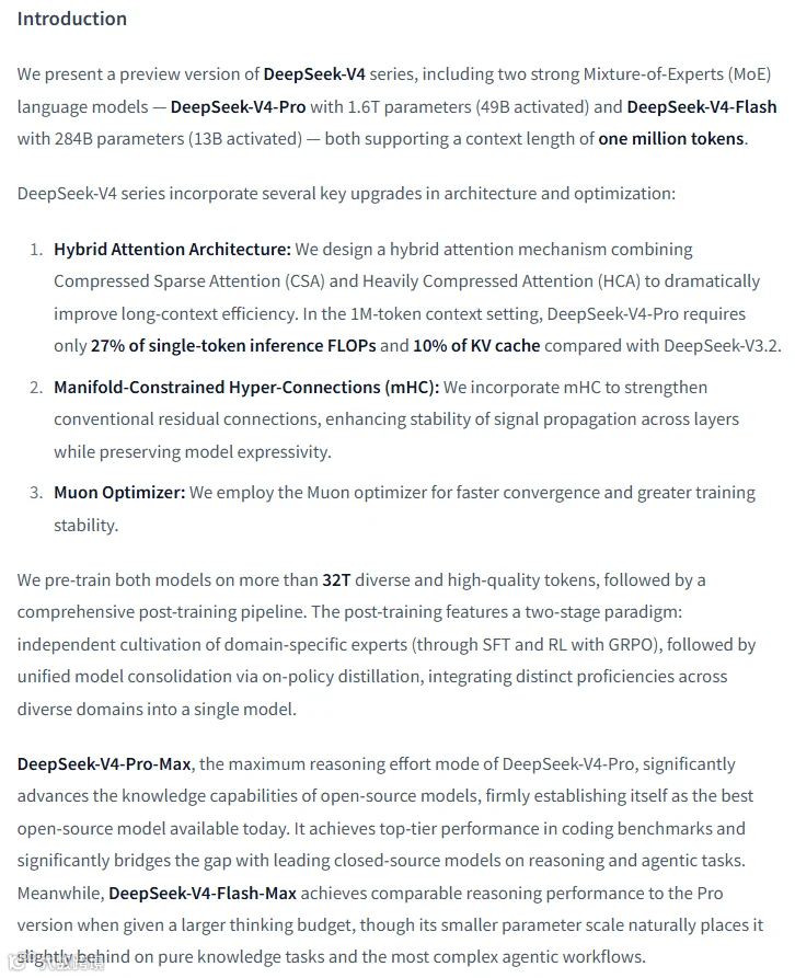 为了方便大家深度研读,我把 DeepSeek-V4 的官方技术细节、各版本参数对比以及 1M 上下文的官方说明汇总成了一份文件。