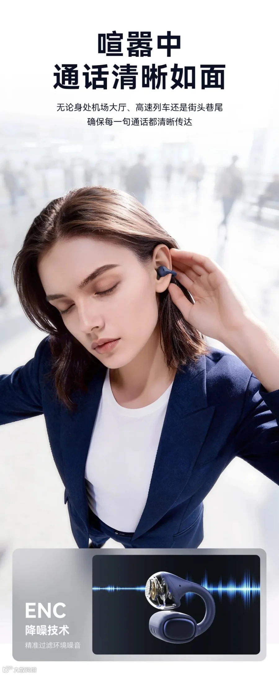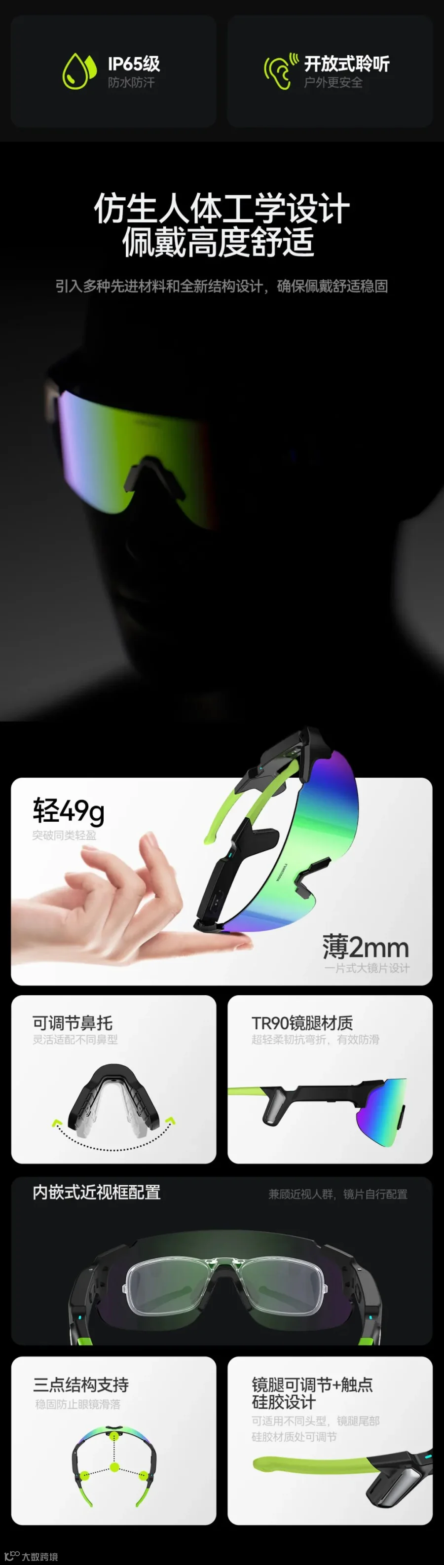它是“眼镜+耳机”二合一设计,开放式聆听,既能听音乐,又能听见周围声音,安全又自在。