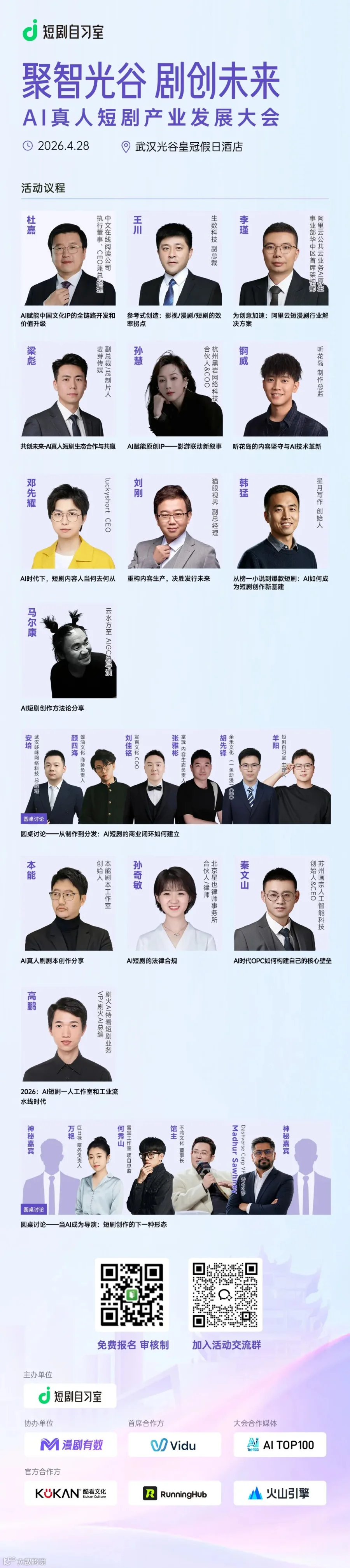 PS:欢迎扫描下方海报二维码,报名短剧自习室“聚智光谷 剧创未来:Al真人短剧产业发展大会”活动。