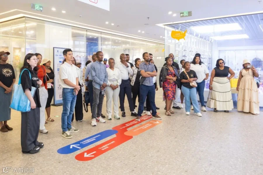 在晋江优品平台运营团队的陪同讲解下,南非研学团一行先后参观了运营中心内设的美国、印尼、马来西亚等七大国家主题展馆,近距离了解晋江本土工厂生产的鞋服、食品等优质产品。随后,学员们走进平台直播间,了解跨境电商直播运营模式、社媒营销推广及海外市场拓展路径,深入了解平台提供的高效、便捷的一站式跨境服务功能。