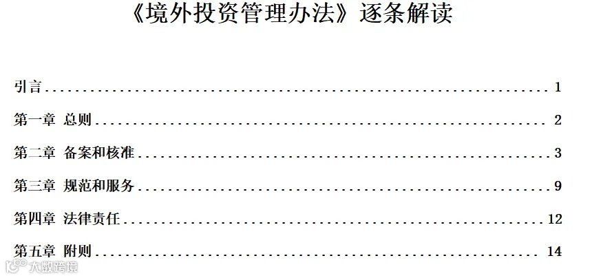 原文:第二条 本办法所称境外投资,是指在中华人民共和国境内依法设立的企业(以下简称企业)通过新设、并购及其他方式在境外拥有非金融企业或取得既有非金融企业所有权、控制权、经营管理权及其他权益的行为。