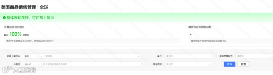 路径很简单:卖家中心——全球环境——商品管理——美国商品销售管理,在这里恢复链接美国站点的销售权益。