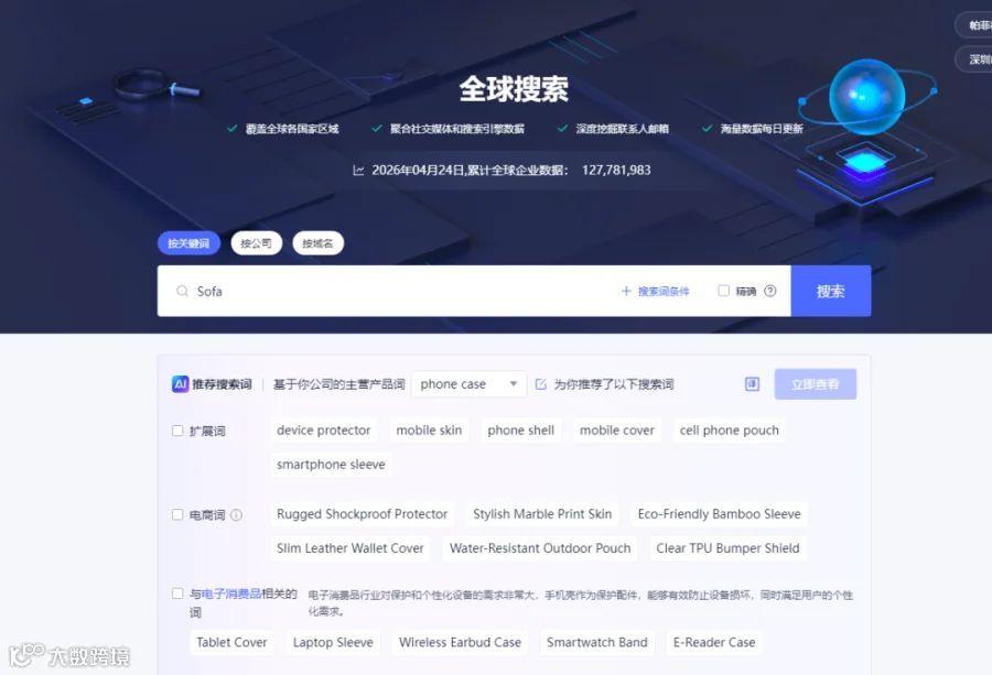 🔍 Step 1:全球搜索,20秒锁定10000+潜在客户