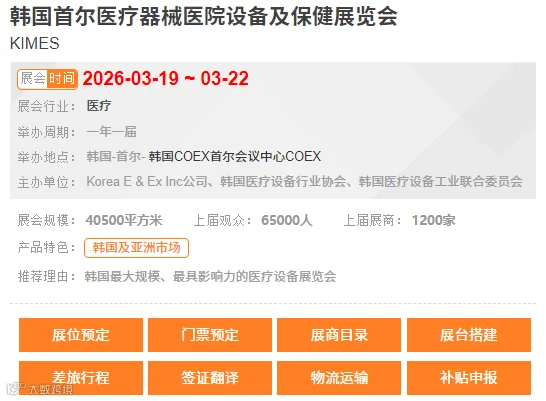[展位预定、门票预定、展商目录、展台搭建、差旅行程、签证、翻译、物流运输、补贴申报]