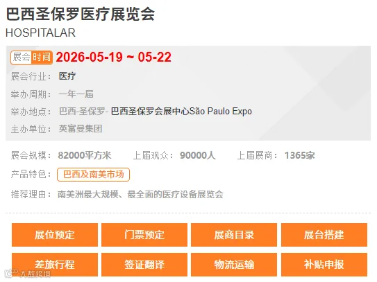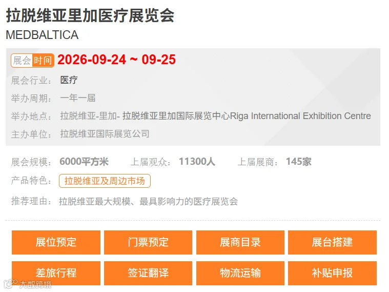 [展位预定、门票预定、展商目录、展台搭建、差旅行程、签证、翻译、物流运输、补贴申报]