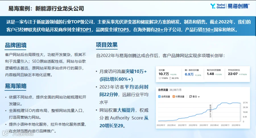 - 困境:作为全球TOP级光伏逆变器厂商,客户网站后台局限大,SEO适配性低,流量引入受阻。