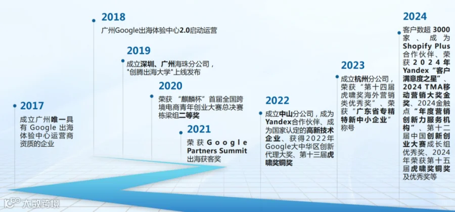 - 2024 年:客户突破 3000 家,拿下 Yandex、Shopify Plus 双认证,斩获虎啸奖、金触点等数十项行业大奖