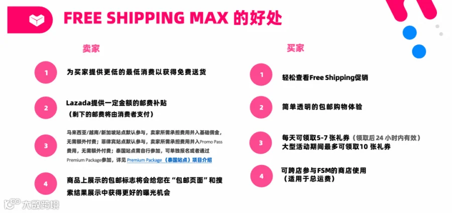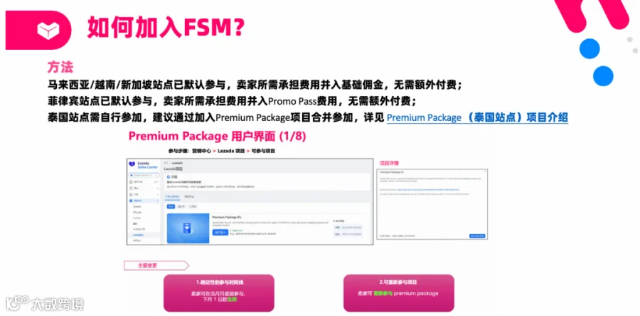 FSM项目详情请登录Lazada卖家大学,搜索“Free Shipping Max(平台包邮FSM)项目介绍”获取指南。