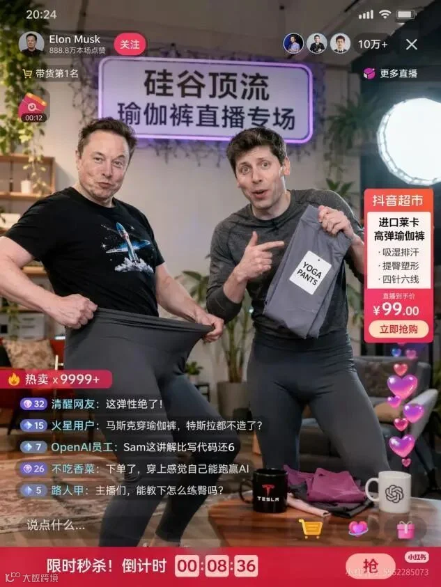 画面完整还原抖音直播界面,包括商品小黄车、限时倒计时及中文弹幕,互动细节毫无破绽。