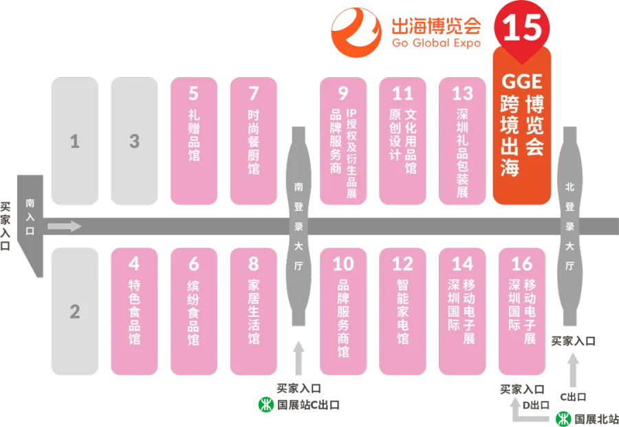 - 15号馆:跨境出海论坛区+平台官方对接+源头工厂展示