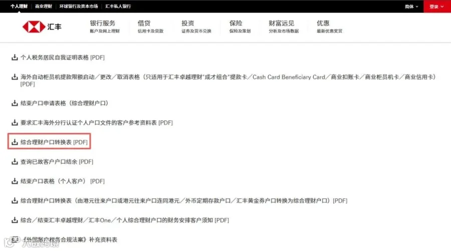 4. 下载《综合理财户口转换表》PDF文件