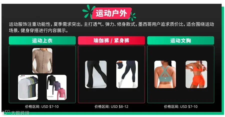 墨西哥服饰消费场景丰富、风格偏好明确,平台开放女装、男装、内睡衣、运动户外及时尚配饰等核心类目,细分赛道机会显著。商家可结合当地审美、气候与价格接受度,打造高竞争力商品矩阵。