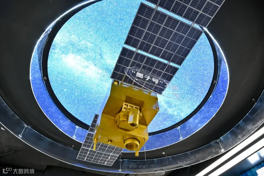 2025年7月1日,量子科技体验馆内"墨子号"卫星模型展示。图/新华社记者 张铖 摄