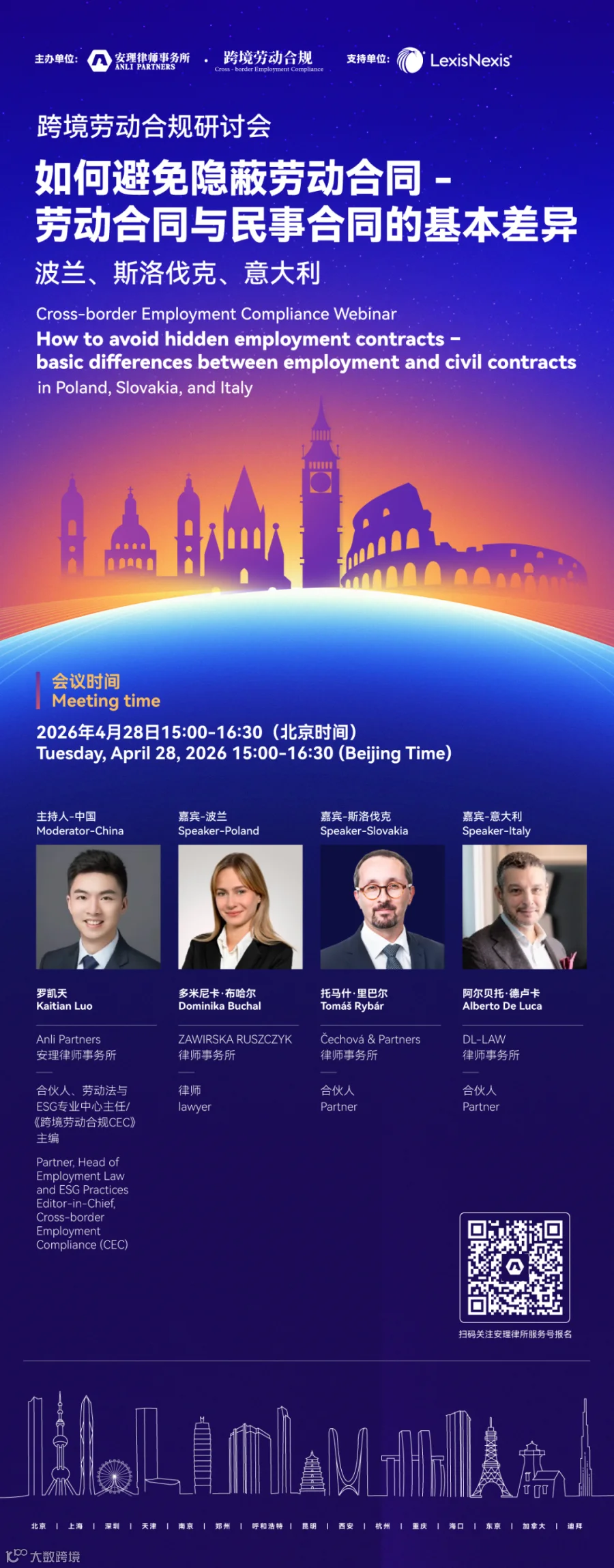 随着中国企业加速全球化布局,跨境投资运营已进入高质量发展新阶段。多元法域用工法规、严苛的国际经贸规则与ESG可持续发展要求交织,使劳动合规成为出海企业核心命题。为帮助企业精准对接国际劳工标准,构建系统性合规体系,"跨境劳动合规研讨会"系列活动正式推出。