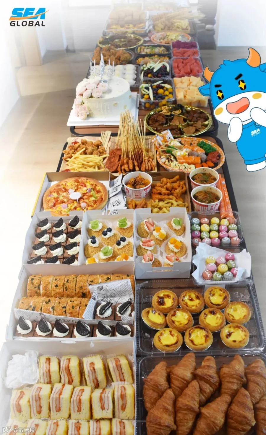 在长桌铺展的缤纷美食间,香气与笑声交织,营造出温暖融洽的共享氛围。