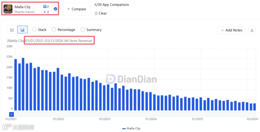 2021年起,《Mafia City》数据见顶,友塔加速SLG新品迭代,陆续上线《The Grand Mafia》《Nexus War》《Savage Survival: Jurassic Isle》等,但市场反响平平;卡牌RPG线亦未突破,自2015年发行《我的學妹不可能那麼萌》后,多款产品均未达预期。