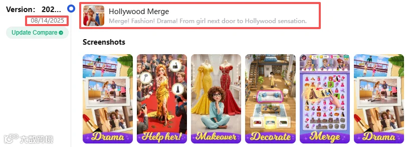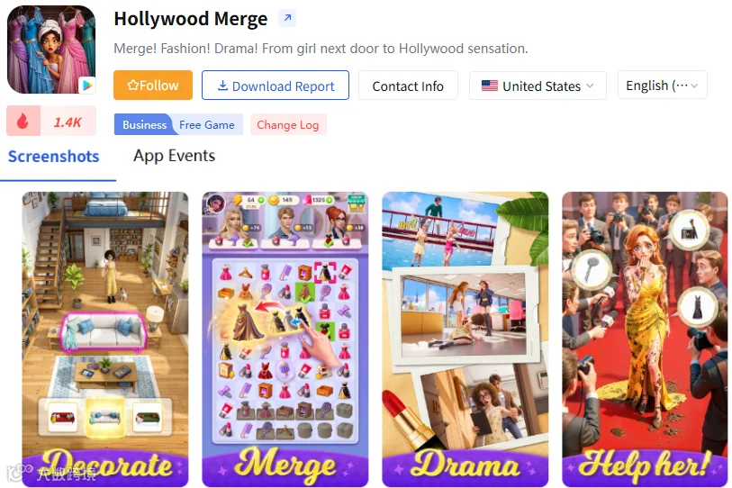 面对SLG与卡牌RPG双线承压,友塔转向休闲赛道:2020年试水三消+家装类《Bella Villa》;2024年通过《Hollywood Crush》确认时尚题材可行性;2025年顺势推出Merge-2产品《Hollywood Merge》,完成从传统重度品类向高成长性休闲赛道的战略切换。