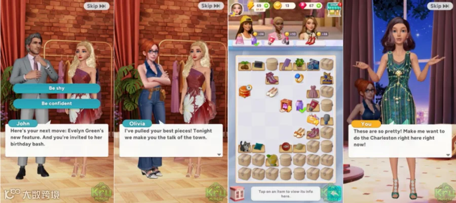 玩法上,游戏采用典型“任务驱动”结构:主线以剧集形式推进,每关设定明确时尚需求(如红毯礼服、首映穿搭),合成棋盘被设定为“女主工作室”。核心循环为“消耗体力→合成指定物品→获取金币/钻石/剧情道具→完成换装/解锁剧情”,其中合成链高度剧情化(如礼服破损→针线盒→布料→高级礼服),增强代入感;同时弱化空间管理难度,聚焦稀有设计图收集、明星生活模拟与剧情体验。
