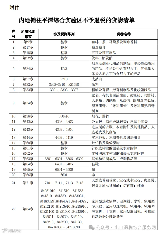 3. 内地销往平潭的其他不予退税货物,具体范围见附件。