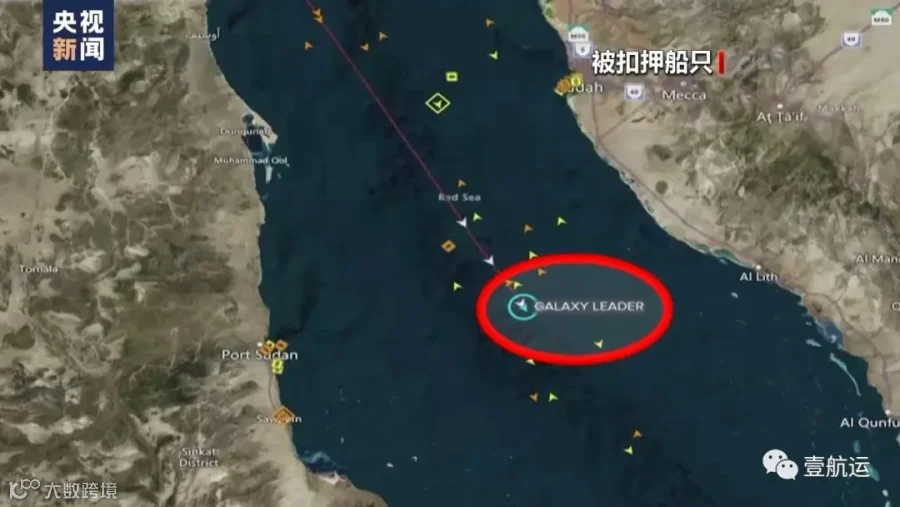 2023年11月19日,胡塞武装在红海海域扣押日本邮船公司(NYK)旗下汽车运输船“GALAXY LEADER”轮。事发时该船正从土耳其驶往印度,胡塞方面指控其与以色列关联。25名船员被拘禁430天后,于2025年1月22日获释,但船舶至今仍遭扣押。
