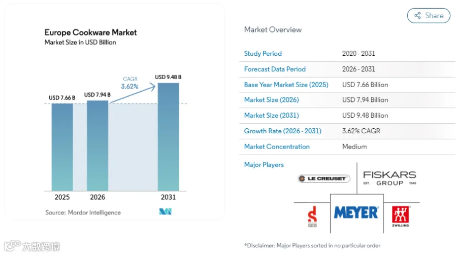 据Mordor Intelligence报告,波兰锅具市场2025–2030年复合年增长率(CAGR)达5.39%,高于欧洲平均水平。
