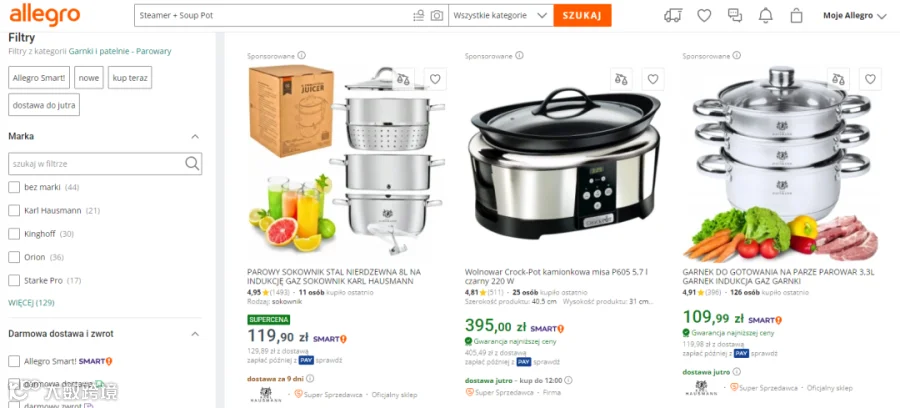 Allegro平台数据显示,“煎锅”“汤锅”等关键词搜索量同比增长超20%;亚马逊波兰站厨房用品持续位列家居类目前三。