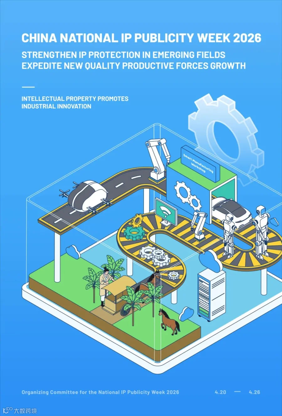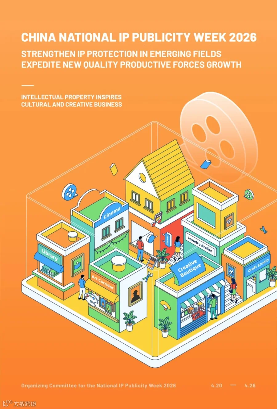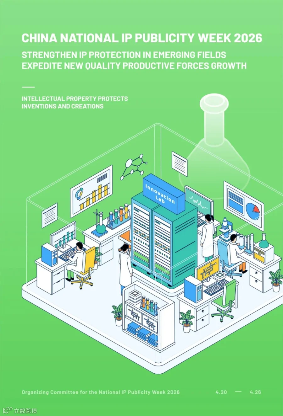 4月20日,以"加强新兴领域知识产权保护 加快新质生产力发展"为主题的2026年全国知识产权宣传周活动即将启动。活动组委会正式推出全新设计的中英文双语系列海报,其中中文版包含四张主题海报,英文版为首次发布。