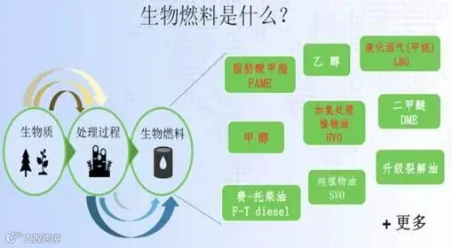 指衍生自生物质的燃油,主要包括脂肪酸甲酯(FAME)、脂肪酸乙酯(FAEE)、加氢植物油(HVO)、粗制植物油(SVO)及生物质液体(BTL)等。与传统化石燃油的本质区别在于:生物质生长过程通过光合作用吸收大气CO₂,燃烧仅释放原有CO₂;而化石燃料与大气关系微乎其微。