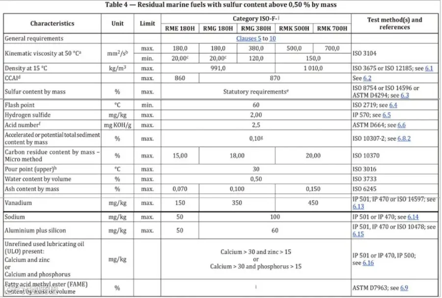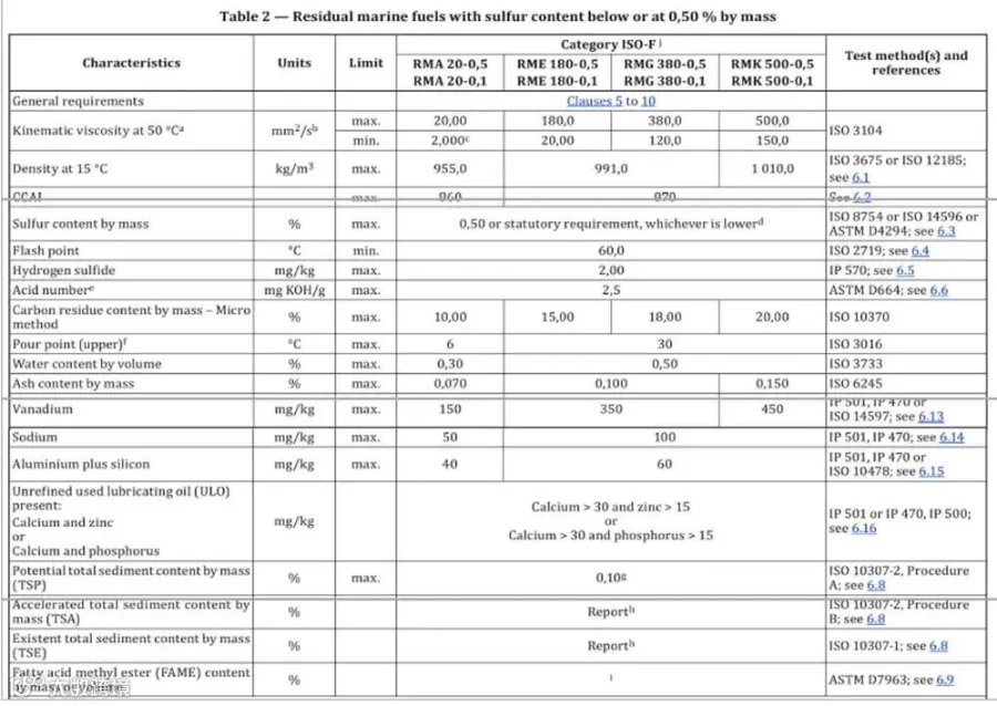 - 表2:VLSFO/ULSFO - 新增0.10%/0.50%硫含量等级,强化沉淀物测试;