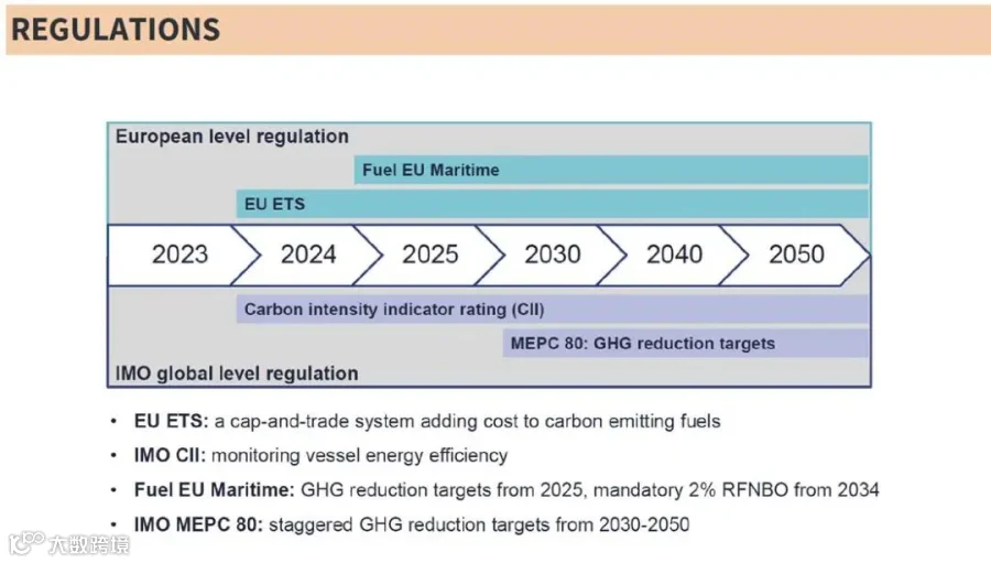 在CII排放指标逐年趋严、欧盟征收EU-ETS碳税及Fuel EU Maritime费用背景下,船东面临合规压力。生物燃油以较低成本实现碳排放合规,成为当前最优选择。