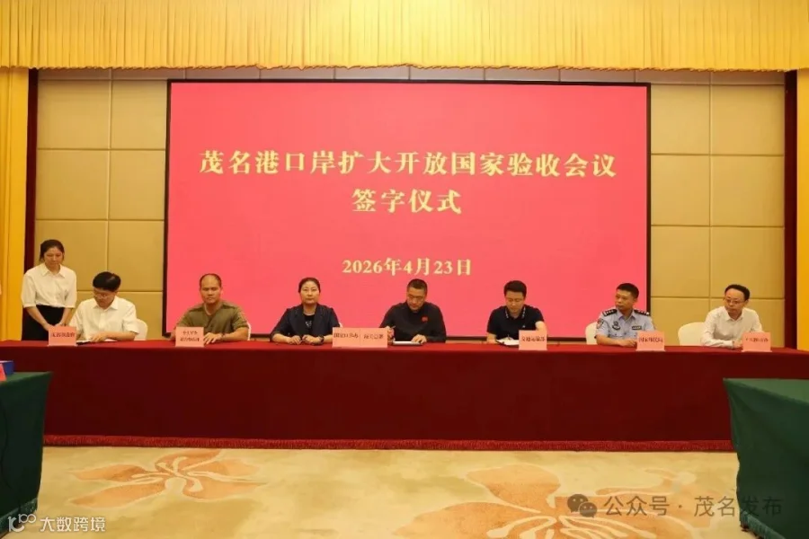 4月23日,茂名港口岸博贺新港区、吉达港区扩大对外开放正式通过国家验收。本次验收涵盖博贺新港区已建成的4个码头(共8个泊位)及吉达港区已建成的1个码头(含2个5万吨级液体散货泊位),新增开放泊位10个,显著提升茂名港口岸对外开放能级。