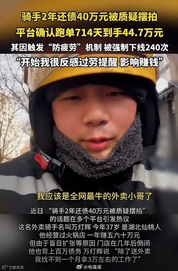 这一成绩引发广泛关注,也伴随大量质疑——有人称其“摆拍”“剧本炒作”,质疑普通骑手能否实现如此高收入。