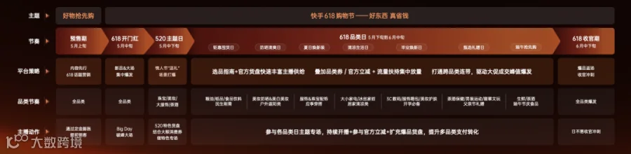 快手电商于杭州召开“赢战2026”618商家大会,宣布全年投入千亿级流量扶持优质供给。大促自5月上旬启动,持续至6月中下旬,分为预售期、开门红、主题日、品类日、收官期五个阶段。
