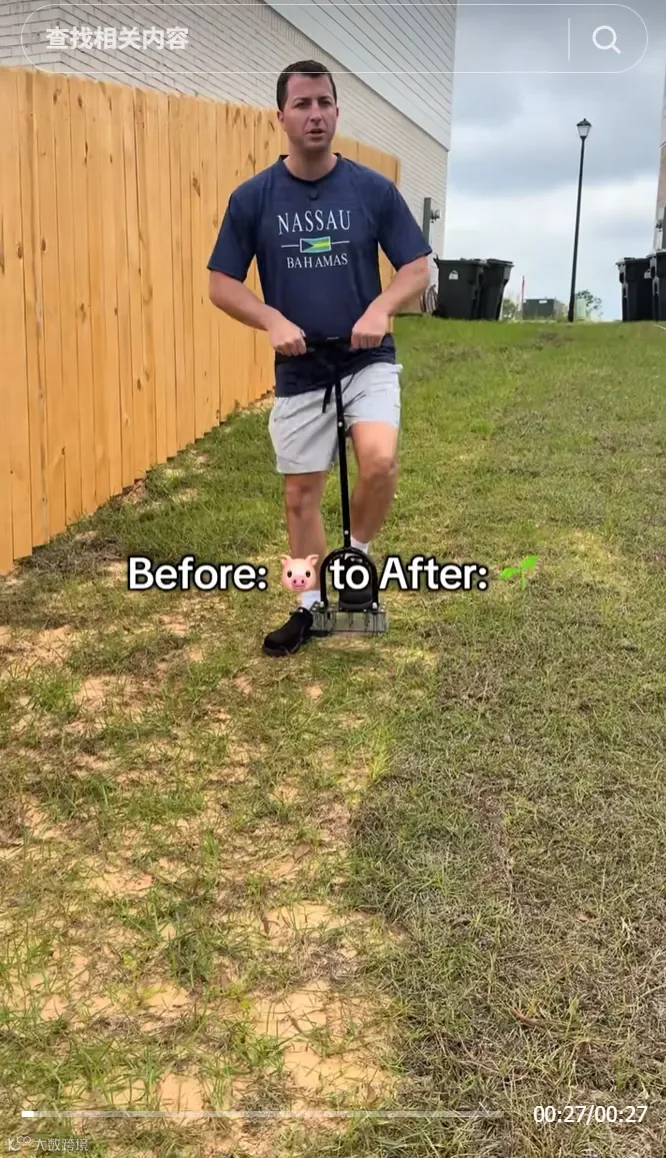 一是精准踩中季节节奏。经历冬季雨雪积压后,草坪土壤板结、透气性差,春季打孔成为庭院养护刚需;该产品采用加长打孔钉,可深入土层改善板结,机身高度自由调节,操作省力,契合用户实际需求。