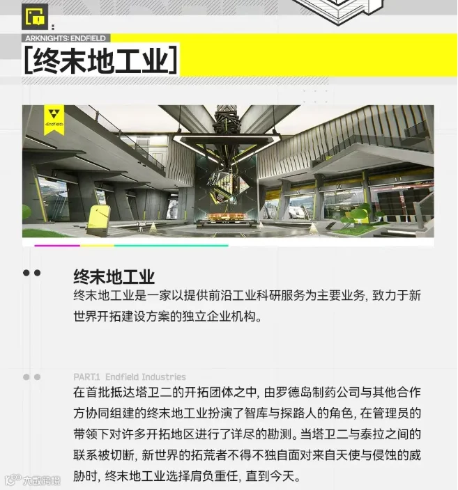 而终末地中同样处处能够体现出这些精神内核。就比如游戏中玩家是终末地工业的管理员,而终末地工业的宗旨就是开拓探索新世界,在荒野之上重建文明。