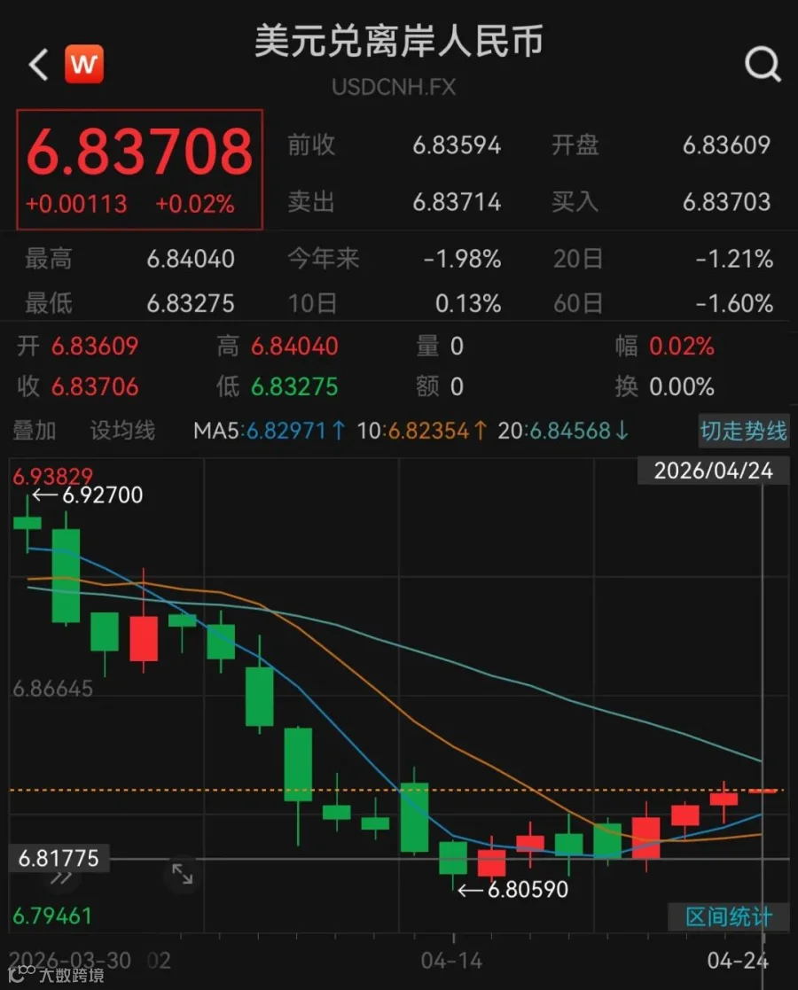 2026年3月以来,中东地缘冲突推升国际油价,美元指数阶段性反弹,美联储降息预期延后,全球汇市情绪快速切换。人民币在贸易顺差与结汇需求支撑下保持韧性,在岸、离岸汇率围绕6.80-6.83区间运行,处于温和升值周期。