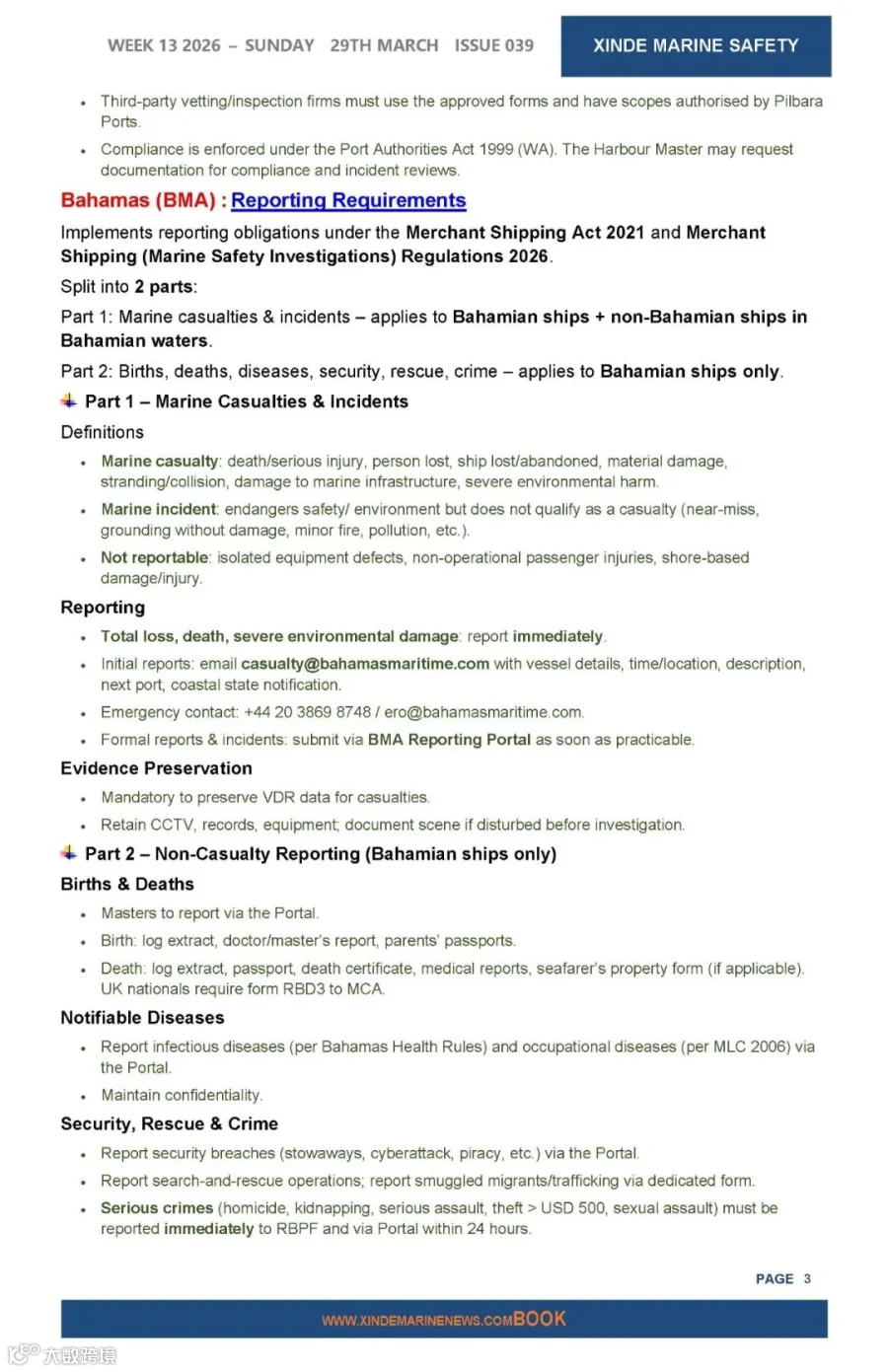 信德海事以提升海上安全为核心使命,系统构建安全信息发布体系。2020年8月推出《信德海事安全周报》,2021年1月上线《安全月报》,2021年2月发布《安全指南》,并于2025年7月推出中英双语版《MARINE SAFETY BULLETIN》。
