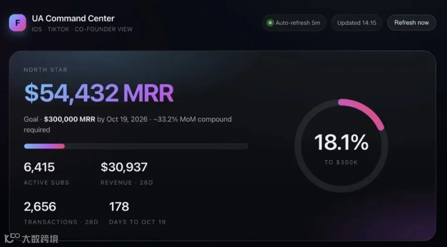 然而,支撑他冲击 30 万美元目标的,并非庞大的市场团队,而是一个他在 Claude Cowork 环境下亲手构建的 全自动实时数据看板。通过接入 RevenueCat API 与 TikTok Ads 的底层数据,利用 Claude Artifacts 的特性,他实现了一个每 5 分钟自动刷新、24/7 全天候运行的指挥中枢。