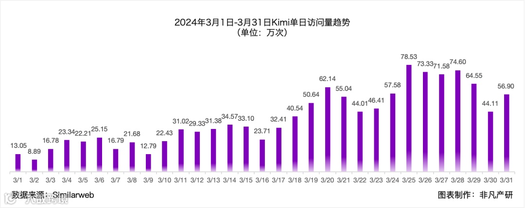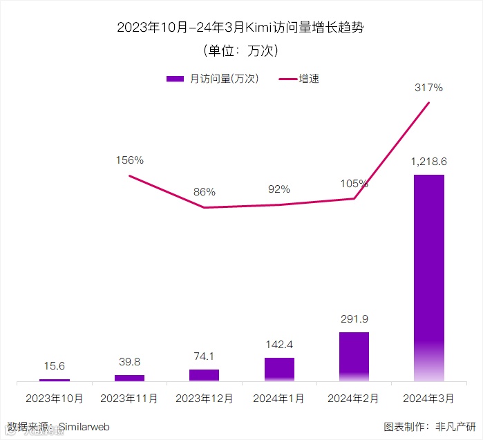 非凡产研:Kimi 3月访问量暴增至1219万,较2月增长317%!