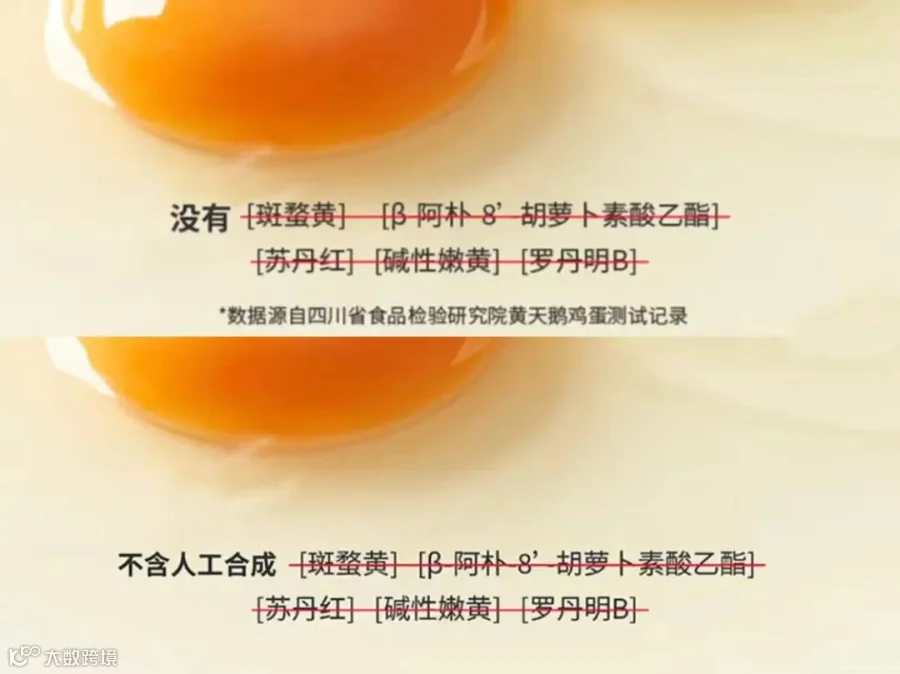 黄天鹅面临同样困境:普通消费者无法区分蛋黄中角黄素是天然饲料(如万寿菊提取物)所致,还是人工添加;现有检测手段与大众认知均无法提供清晰、无争议的答案。
