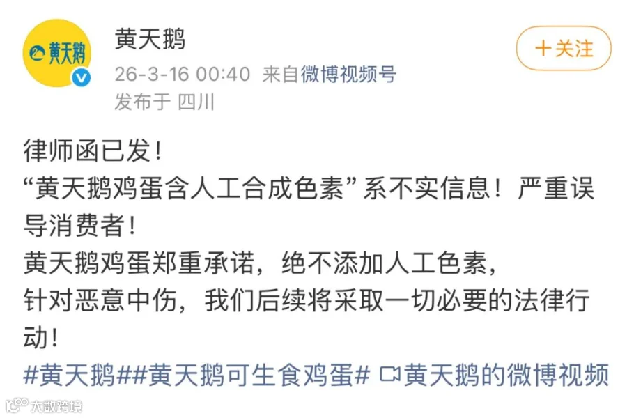 本次危机中,黄天鹅团队陷入一种偏执:执着于证明“未人工添加角黄素”,反复用检测报告与饲料溯源来自证清白。