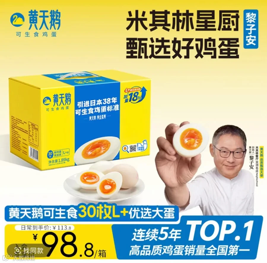 回归黄天鹅商业本质:其高价逻辑,除可生食安全标准外,最强心智锚点是“天然蛋更黄”。