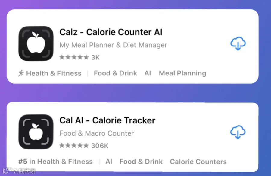 其他的模仿者试图通过在标题里强蹭 Cal AI 来获取流量,这种直白的侵权行为是苹果审核员最容易捕捉的目标。如果你在标题中直接使用了竞争对手的