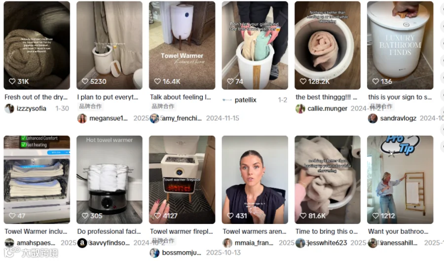 海外消费者对毛巾清洁问题尤为重视,潮湿环境易滋生螨虫,促使毛巾加热器需求持续攀升。近两年社交媒体涌现大量高播放量产品测评,印证市场热度。