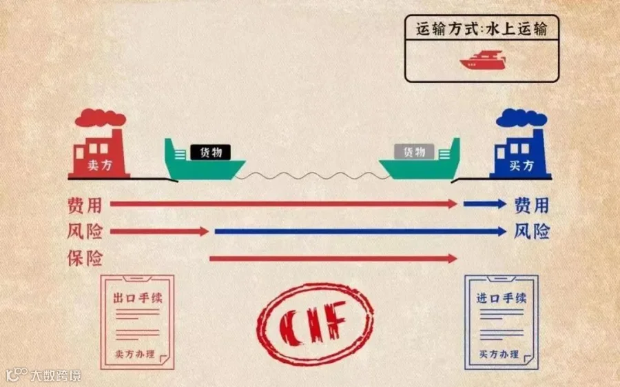 - CIF(成本+保险+运费)、CFR(成本+运费):运费由卖方承担;