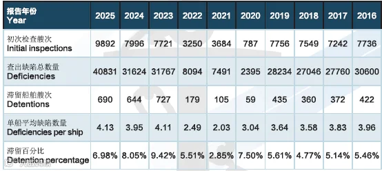 2025年,1152艘次中国籍国际航行船舶在亚太地区接受PSC检查,同比增6.08%;在巴黎、印度洋、地中海等其他备忘录区域检查合计457艘次。其中被滞留11艘次,涉及8个国家。