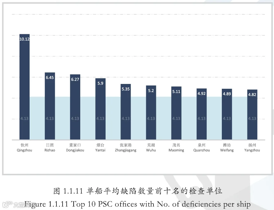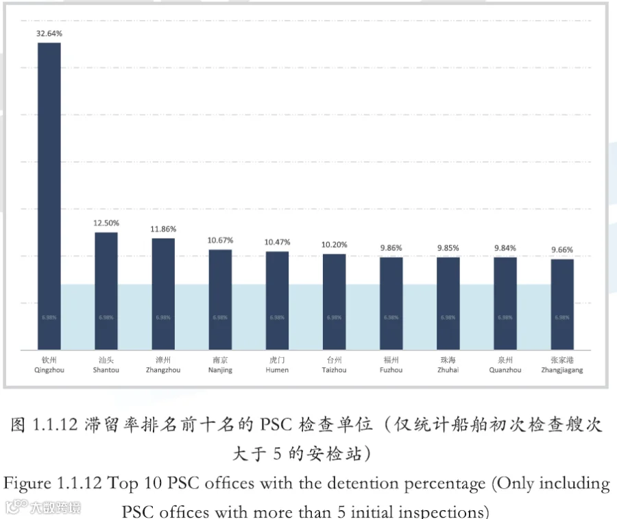 单船平均缺陷量钦州PSC以10.12项居首,日照次之;滞留率钦州(32.64%)、汕头(12.50%)、漳州(11.86%)排名前三。