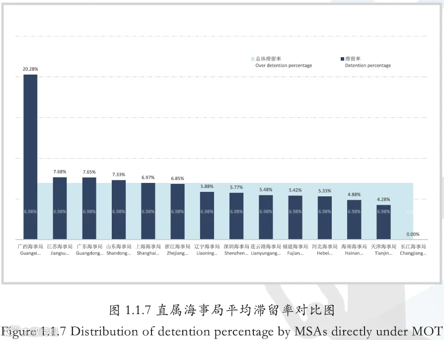 滞留船舶690艘次,山东(98艘次)、广东(89艘次)、江苏(78艘次)数量最多。平均滞留率6.98%,广西(20.28%)、江苏(7.68%)、广东(7.65%)居前三。