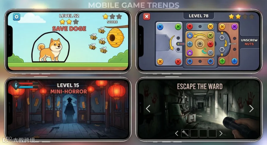 出海圈的跟风速度向来极快。当市面上的合成、塔防、割草开始密集套上微恐的外衣时,海外玩家的新鲜感大概率会面临一波考验。